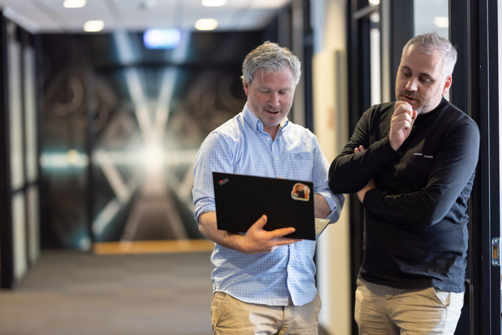 I et stort firma hadde vi vel blitt plassert i kjelleren, sier Lars og ler. – Men her sitter vi, tre dataingeniører på eget kontor. Ingen av oss er spesielt glad i åpent landskap, nemlig, så dette er perfekt. I kontorene på Forus kommer latterkulene tett, for humoren deler de og den deles raust, det samme gjør de med interessen for koding, tall, systemer – data rett og slett. Det er liten tvil om at disse tre karene har stor glede av jobben sin – og hverandre!